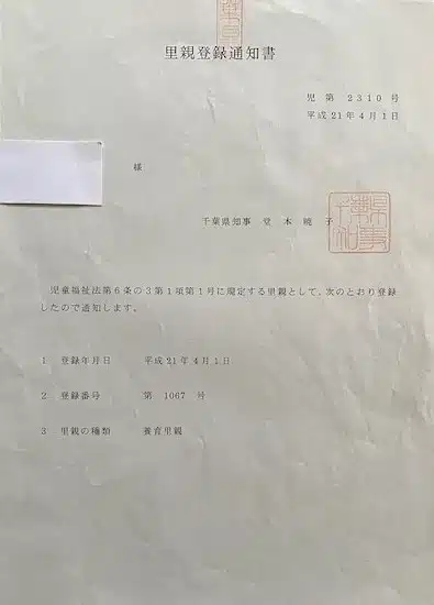一般的に千葉県で言う交付式とは、「里親登録通知書」を県知事に代わり、児童相談所長が里親に授与する儀式のことです。私が児相で里親担当の相談員をしていたころには、すでに行われていたので、少なくとも30年以上前から開催されていたセレモニーです。しかし、正式な儀式として千葉県の全児童相談所で必ず行われているわけではなく、児相長の考え方や都合で式を開催せず、通知書を里親宅に郵送するときもあります。また、児相が開催を指定した日時に出席できない里親には郵送したり、その里親だけ別日に通知書を渡すときもあります。県の児童家庭課が通知書を発行する時期は同じでも、6つの児相で里親登録通知書を里親に授与する時期や方法は、所長や里親担当者の考え方でまちまちになっています。