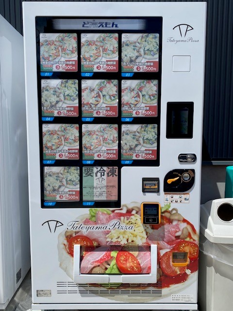 昨日の朝、自転車で漁港近くの鮮魚店の前を通過しようとして、ちょっと変わったものに気づきました。下の画像の自動販売機です。真鯛と真アジと金目鯛の三種類の魚がそれぞれトッピングされた冷凍のピザが、自販機で売られているのです。1パック2枚で1,500円、トマトソース1枚、ジェノバソース1枚と書かれていました。パックが入るバックもなく、そもそも財布も持っていなかったのでそのまま帰ってきて、夕方車で回って「真アジと季節の地野菜」1パックを購入しました。家に帰ったときは、すでに夕飯のメニューは決まっていたので、今日の夕方味見をしてみようと思います。