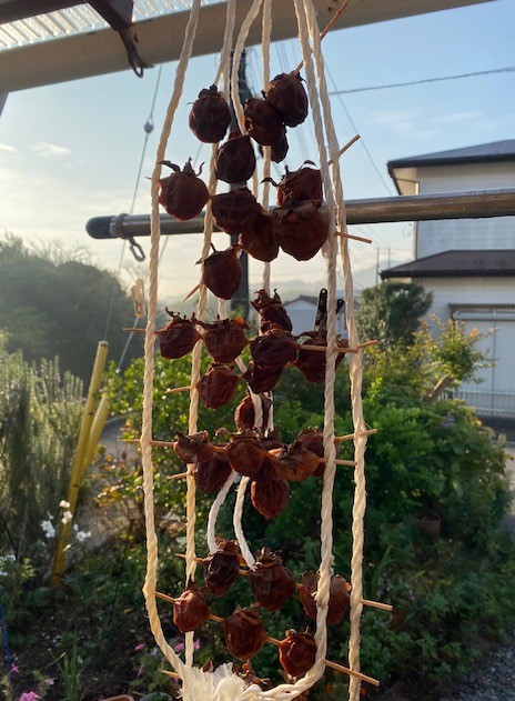 10月17日の「里山だより」で、今年も干し柿作りを始めたことをお伝えしました。その中で、去年よりも2ヶ月近く早く始めたことも書きましたが、軒下に吊した柿を見た近所の人に、「早く吊すときは、皮をむいたあと熱湯を通してからでないとカビが生えてしまうよ。」と言われました。