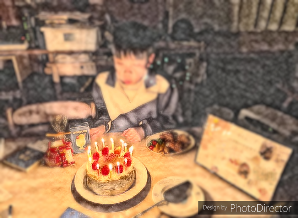 先週、我が家の里子が14歳の誕生日を迎えました。翌日から二日間の定期テストを控えていたこともあり、学習塾から帰ってきたあと、慌ただしく誕生祝いをしました。下の画像は、編集ソフトを使って加工したものです。