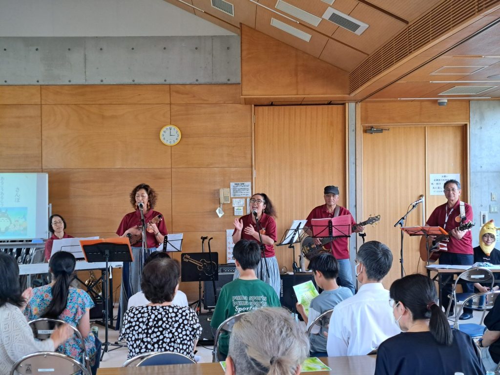 昨日に引き続き、東上総支部でのオレンジ・バンドのコンサートについて書きます。昨日は、「仲間たち」が何を演奏したかをお伝えしましたが、今日はオレンジ・バンドの演奏した曲を紹介したいと思います。バンド全体で演奏したのは、「さんぽ」「どんな色が好き」「幸せなら手をたたこう」「はたらくくるま」「ようかいしりとり」「にんげんていいな」の6曲、その他、サックスとピアノ担当の二人は「アイドル」を演奏しました。その他、バンド演奏をバックにパネル・シアター「はらぺこあおむし」をやりました。