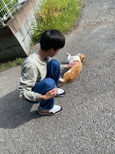 昨日の日曜日の午後、高1の里子を誘って散歩に出ました。通っていた小学校に行ってみたいというので、久しぶりに登下校のコースを歩くことにしました。歩き出してすぐに、「この辺りに人なつこい猫がいたんだ。」と言うのを聞きながら歩いていると、遠くの方からその猫がトコトコと近寄ってきました。しばらく遊んでもらってから、あらためて小学校を回る一時間ほどのコースに出発しました。