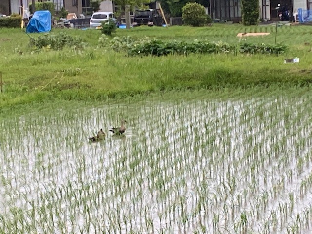 昨日の夕方、里母と高校一年の里子がそれぞれ外出していたので、することもなく早めに風呂に入ることにしました。窓から田んぼを見ると、細かい雨の降る中3羽のカモが浮かんでいました。天気予報で、今年は梅雨入りが早くなりそうだと言っていたのを思い出しました。