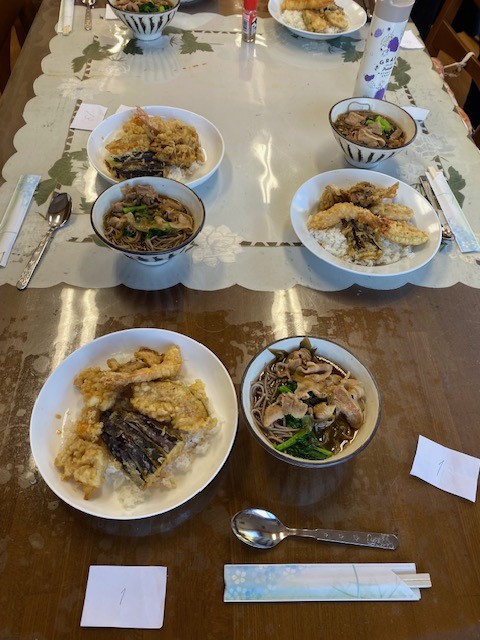 昨日は恒例のオランチで、南オレンジの職員が集合して今月の調理担当スタッフ心づくしの料理をいただきました。今回のメニューは、「天丼(エビ、マイタケ、茄子、レンコン、カボチャ)」「肉蕎麦?」「米粉のロールケーキ}でした。どれもとても美味しく、多めに用意されていた食材を「天ぷら蕎麦」にしてお代わりしました。そして今回も、午後の会議で居眠りしてしまうのではないかと心配になりました。(画像ではまだロールケーキが配膳されていません)