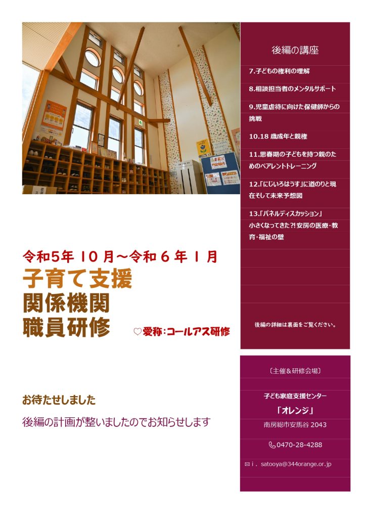 子ども家庭支援センター「オレンジ」が実施してまいりました「子育て支援関係機関職員研修」(通称「CALL US研修」)を令和5年度をもって終了いたします。