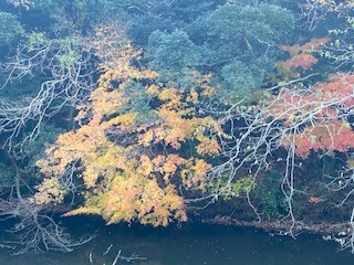 毎日、里山の真っ只中の道を、四季の移り変わりを感じながら職場に通っています。このところの冷え込みで、南房総の山の紅葉も進み、通勤路の途中にある堰にかかるモミジもいい具合に色づいて来ました。