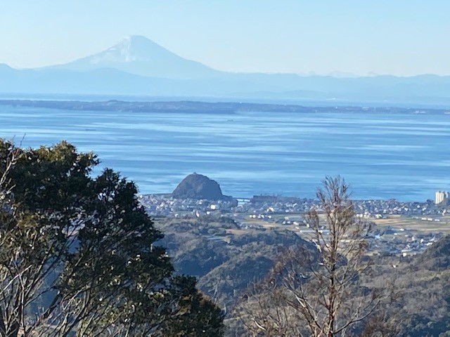 第三位になったのが、元日、富山(とみさん)に登ったときの写真です。海岸沿いにおまんじゅうのような大黒山、その先に東京湾越しの富士山が見えます。