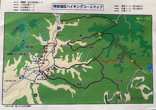 昨年末、南房総地域の地方紙「房日新聞」に「神余(かなまり)ふれあいハイキングコースが整備された。」との記事が載っていたので、さっそく歩いてみることにしました。拠点となる「ふれあい神余の里」に置いてあるコースマップを見ると、7つほどのコースがありました。歩いたことのない山なので、カッコ書きに初心者向けとある「尾根コース」を歩くことにしました。歩き始めから1時間ちょっとで車まで戻ってきましたが、ほとんど平坦で歩きやすい山道でした。新聞に出たのだから、ハイキングしている人に会うのかと思っていましたが、スタート地点近くで墓掃除をしている人と、コースの途中で炭焼きをしている人しかいませんでした。