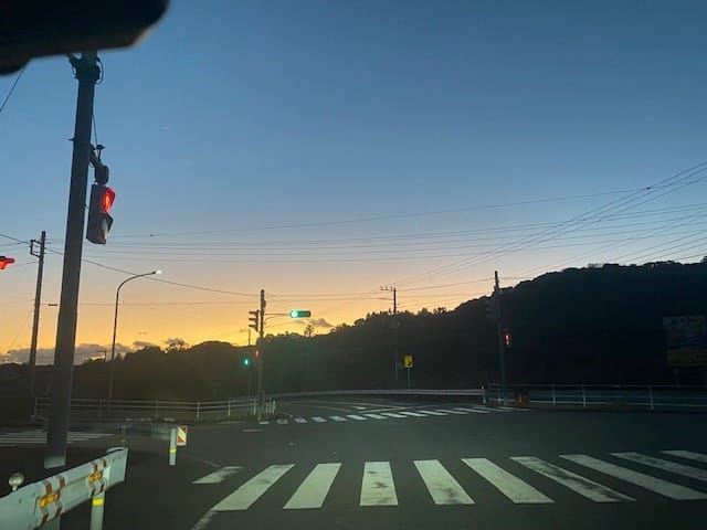 先日、早朝に出勤しなければならない仕事があり、いつも通っている里山の通勤路を車で走っていました。まだ、日が出ていない時間だったので、峠道はアイスバーンになっていました。交差点で信号待ちをしている時、ようやく明るくなってきました。