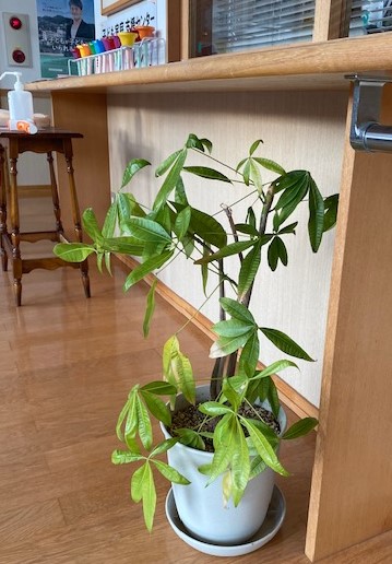 君津事務所の開設祝いに贈られた小さなパキラ。(イメージ)
