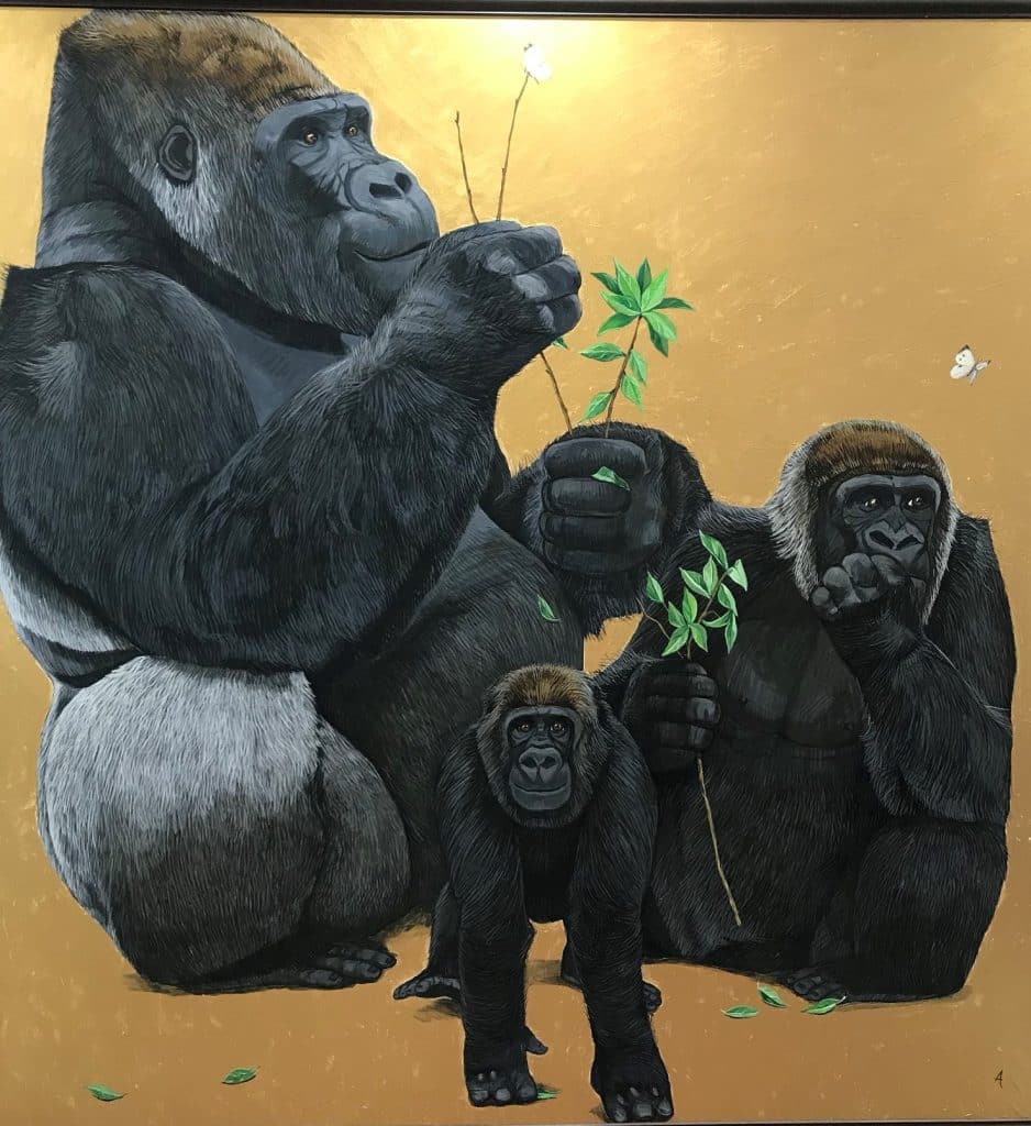 画像は、30年以上ゴリラだけを描き続けている画家、阿部知暁(ちさと)さんの作品です。